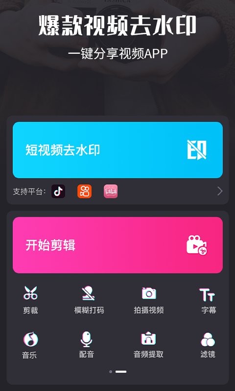 2、音频提取等各种实用视频剪辑小功能,帮助您在手机上剪辑出您想要的视频。