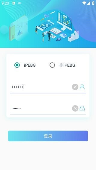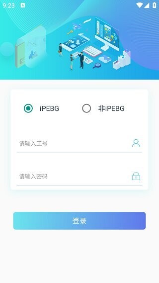 2、选择“iPEBG”选项登录,需要输入工号和密码进行登录,新员工的初始密码为入职日期。