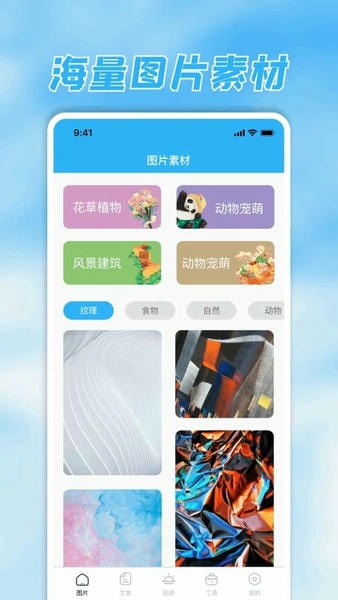 素材君app包含大量精美文案句子、朋友圈素材内容,还有丰富的手机贴纸以及图片编辑工具,为用户带来良好的掌上发文素材搜索工具!