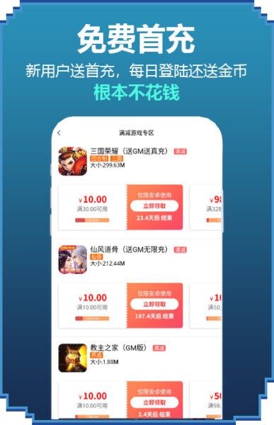 免费首充福利:新用户注册即可领取首充奖励,每日登录还能获得金币奖励。