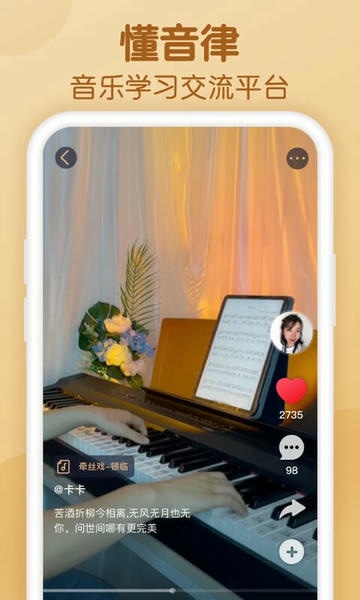 懂音律是专业的音乐学习软件,在这里你可以找到各种乐器的乐谱,钢琴、吉他全乐器都有,弹奏实时纠错,让你快速提升。在弹奏上有任何问题,都可以在平台上咨询,专业人士为你解答。