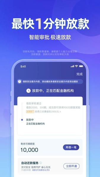 4、放款快:自动化审批,最快1分钟到账;