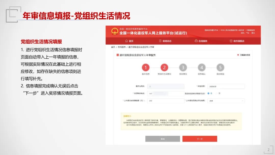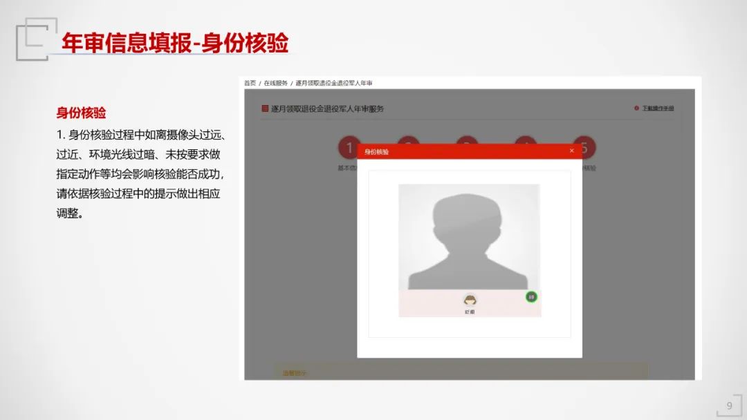 “年度登记”俗称“年审”,采取现场登记或网上登记相结合的方式进行,个人可选择其中一种方式登记。现场登记,请携带身份证到安置地退役军人事务部门登记;2024年起,网上登记一般为当年的1月1日到3月31日,具体流程如下:
