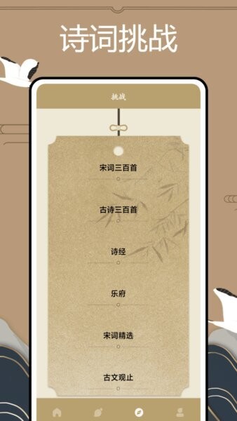 通过宋词三百首、古诗三百首、诗经、乐府、宋词精选等多关卡挑战,增强学习趣味及成就感,适合多层次用户。