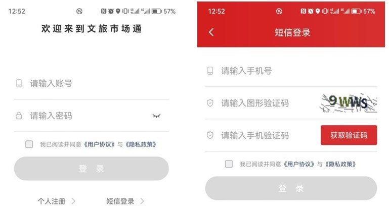 移动端登录分为两种登录方式,账号密码登录、手机验证码登录。如下图