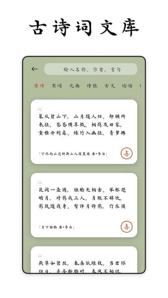 -特色的打卡功能,让您可以记录已阅读的诗词,轻松完成个人成长计划。
