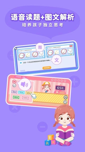 2.语音读题+图文解析:内容配备语音读题和提示,引导孩子自主探索,在语音指示下即可完成基本操作,家长不必再时时陪同.