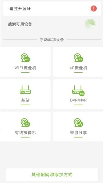 根据设备类型和网络环境,选择蓝牙搜索、手动添加或WiFi/4G摄像机配网方式,系统自动提示下一步操作,确保连接顺畅。