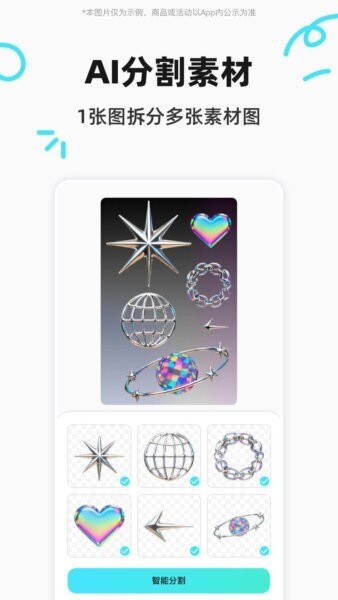 该功能能将一张图片拆分为多张独立素材,方便用户自由组合和设计,拓展图片的使用场景和创作空间。