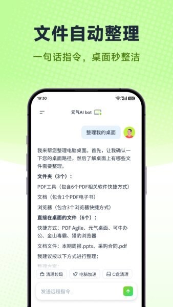 元气AI Bot内置系统加速和垃圾清理功能,帮助用户管理C盘空间和优化系统性能,保证电脑流畅运行。通过手机端即可一键执行,减少维护成本,延长设备使用寿命。