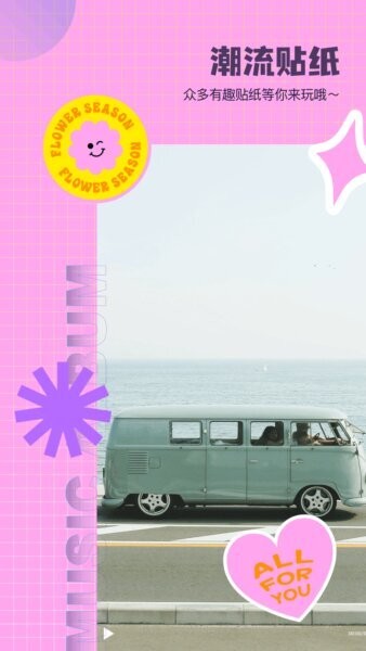 点击贴纸入口,挑选潮流贴纸根据视频内容进行装饰,增强画面趣味性和个性化。