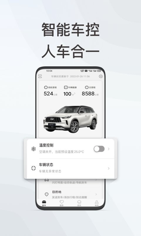 英菲智联app是东风英菲尼迪汽车有限公司为旗下互联网汽车推出的车主服务软件,提供前所未有的智能化科技服务和个性化出行体验。