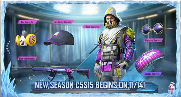 奖励更新:投放粉色品质全套资源:C5S15眼镜、C5S15套装、C5S15降落伞、C5S15面饰、C5S15头饰、C5S15-SKS