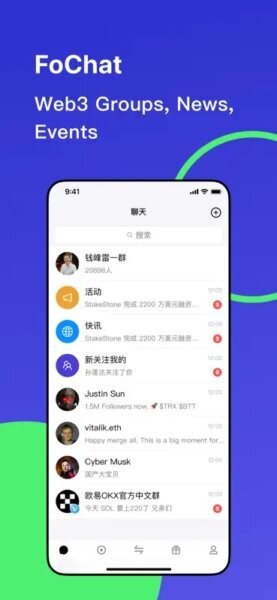 FoChat定位为一款集Web3社群交流、代币行情追踪和多媒体互动于一体的移动端应用,专为数字货币投资者及区块链爱好者设计。它通过整合行情数据、社群群聊、直播短视频以及资讯推送,为用户构建了一个涵盖Web3生态全方位信息的数字平台。界面设计注重信息层级清晰,首页重点呈现当前热点代币价格和社区活跃动态,突出重要数据与交易趋势,使用户在第一时间掌握市场脉动。