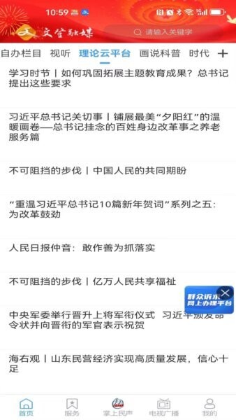 文登首发最新版本特别优化了首页导航和频道分类,采用稳重大方的配色风格,方便用户在首页直接浏览重点内容。主界面底部设有个人中心和直播入口,增强用户粘性及互动体验。这样的设计不仅适合党员干部及社区工作者,也极大便利了普通市民和企业用户对政务服务的日常使用,是一款值得下载安装到手机的政务类APP。