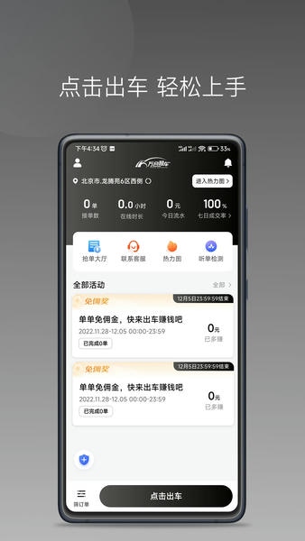 2、利用手机可以随时开启听单模式,司机能够得到系统派发的订单;