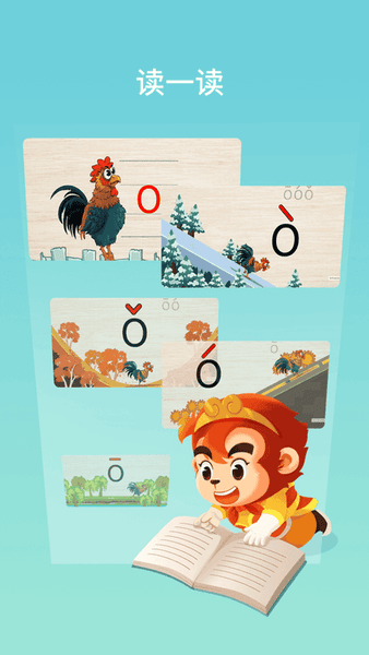悟空拼音全课程免费版是以孩子们熟悉的孙悟空ip进行打造的课程学习app,有效帮助孩子系统化的学习拼音,在这里以西游故事为主要内容,进行各种有趣的动画和游戏,帮助孩子加深印象,寓教于乐,更好的提升汉语言文学的兴趣,为日后的学习打下牢固的基础。