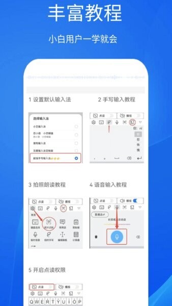 提供详细的默认输入法设置教程、手写输入教程、拍照朗读教程、语音输入教程等,帮助各类用户快速掌握各项功能,降低学习成本,提升操作便捷性。