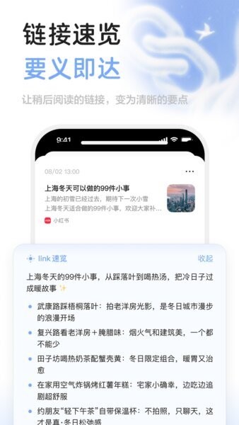 粘贴或点击链接后,应用自动显示网页摘要,避免频繁跳转,提高获取信息的效率。