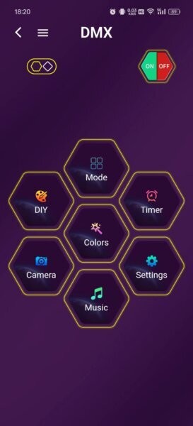 通过首页“Mode”按钮,用户可一键浏览和切换多种预设灯光模式,方便根据不同场景需求即时调整灯光表现。