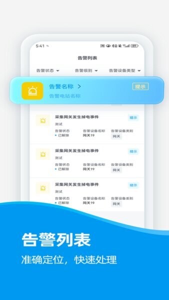 告警列表集中管理所有设备异常信息,及时提醒用户处理潜在故障或风险,确保电站安全稳定运行。