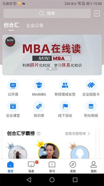 2.提供消息通知服务,将其分为学习提醒、企业公告、系统消息等,方便查看;