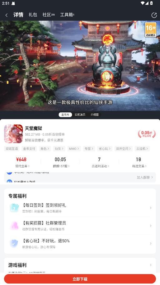 海量安卓手游高价值VIP礼包,平台活动不断档,新游不断礼包不断,天天新服千人同屏,各种返利应有尽有。功能非常强大,热门游戏应有尽有,海量资讯实时推送,还有超多bt游戏供用户下载。
