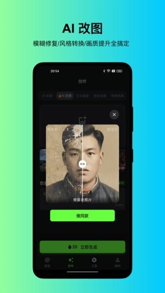包括照片修复和风格转换,用户能够轻松改善老照片质量或将图片转换为不同艺术风格。