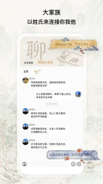 族聊是一款面向同族成员的交流平台,重点在于通过信任机制促进家族内部沟通,同时支持非遗文化的传播与传承,用户可以分享、收藏文化内容并参与互动。