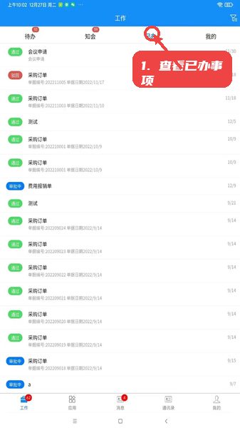 切换至已办标签,用户可以回顾已处理的工作,确认任务完成状态,提高信息透明度。