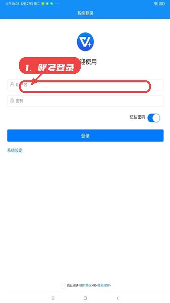打开聚微云APP后,在登录界面输入正确的用户名和密码,若需要可勾选“记住密码”,加快后续登录速度,点击登录进入系统主界面。