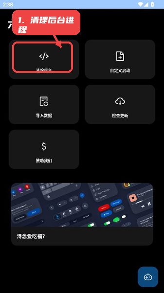 在主界面找到“清除后台”按钮,点击即可关闭所有正在运行的后台进程,释放内存,优化设备性能,适合手机变慢或卡顿时使用。
