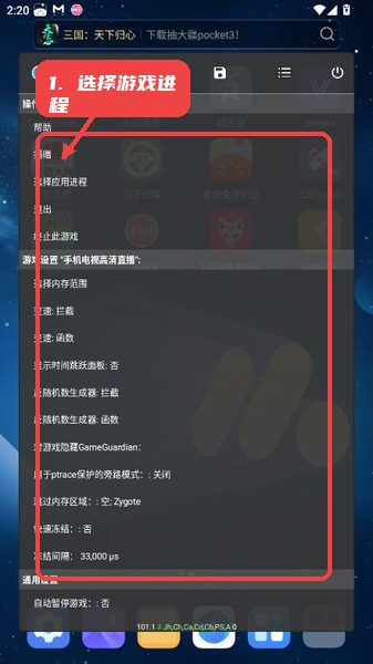 点击“选择应用进程”,软件会列出当前运行的所有应用,用户从列表中选中目标游戏进程,确保后续调试针对正确的游戏。