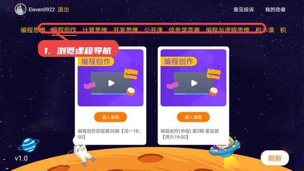 课程分类导航位于首页显著位置,用户可以根据兴趣点自由切换不同专题,如“编程思维”与“编程创作”,系统智能筛选相应课程。这种分类方式简化了学习路径,帮助初学者和进阶者快速定位适合自己的内容,避免信息冗杂带来的选择困难,提高了课程查找效率。