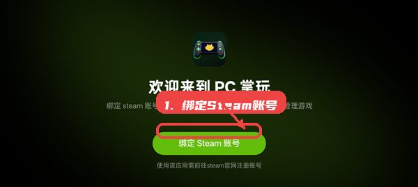 用户通过首页“绑定Steam账号”入口,授权授权pc掌玩访问Steam游戏库数据,实现游戏及存档的自动同步,保证游戏信息实时更新,无需手动输入游戏列表。