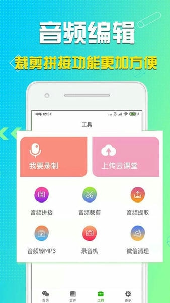 语音导出软件提供语音拼接、音频裁剪、音频提取、音频转码、录音机等多种音频处理工具,同时新增的清理功能还可以清理社交软件中的垃圾文件。