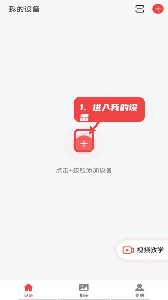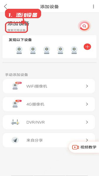 打开应用后,首页即为设备管理界面,可以查看已添加的摄像机和视频教学入口,便于新用户了解基础操作。