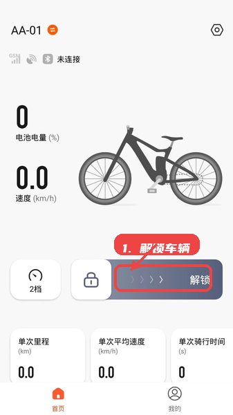 设备连接完成后,回到主界面点击“解锁”按钮,即可启动电动车,开始骑行。