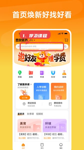 1、课程搜索。