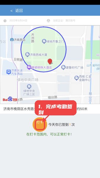 第二步,完成考勤签到。