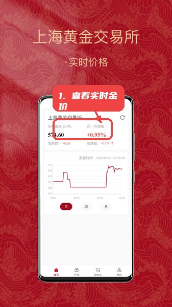 在首页或价格查询页面查看上海黄金交易所的当前金价及涨幅信息,还可以切换日、周、月时间维度观察价格变化,辅助判断购买时机。