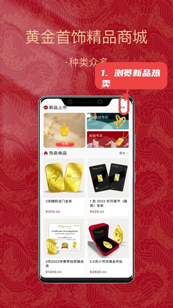 浏览最新推出的黄金商品,了解市场动态。热卖单品推荐帮助挑选受欢迎的黄金首饰和投资产品,适合寻找热门商品的用户。