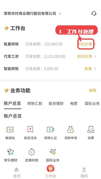 在工作台页面找到批量转账或代发工资入口,点击完成资金批量划转和发放,适合企业统一处理多笔资金支付。