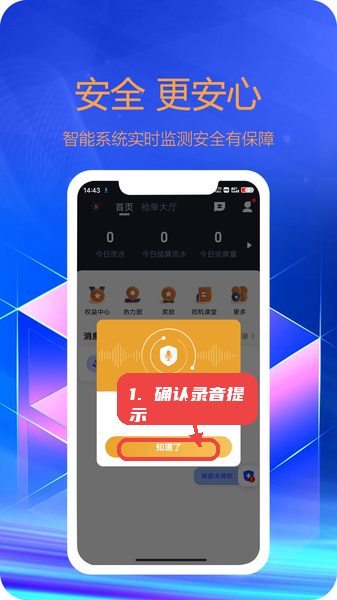 启用行程录音时,弹出提示,点击“知道了”确认,确保录音功能正常使用。