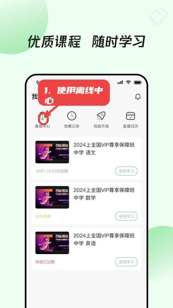 通过离线中心,用户可以提前下载课程内容,无需网络环境也能继续学习,适合经常需要利用碎片时间学习的场景。