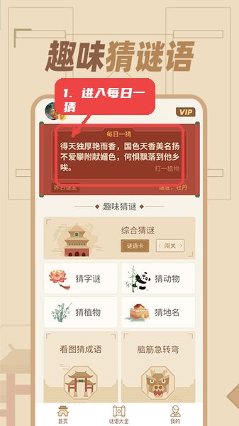 每日一猜每天推送新的谜语,用户可在首页直接参与解答,体验持续更新的内容新鲜感。