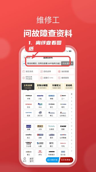 维修人员可查询故障解决方案、查看品牌资料,并能离线收藏图纸,满足无网络环境下的使用需求。