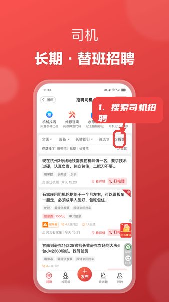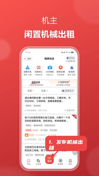 第一步,发布机械出租或找活信息。