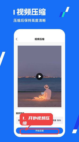 在视频压缩界面选择画质,点击“开始压缩”按钮,完成视频文件大小优化。