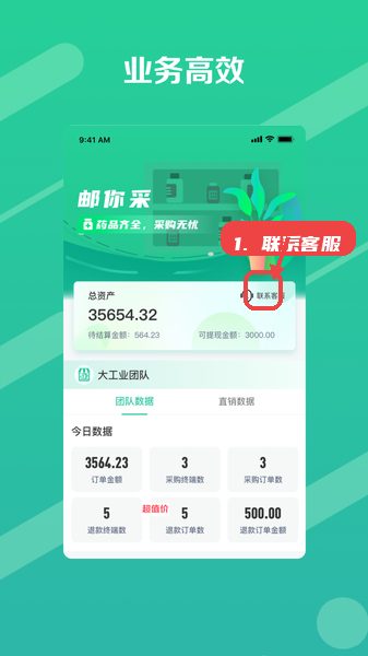 通过应用内“联系客服”入口咨询采购相关问题,帮助解决业务中遇到的具体困难。